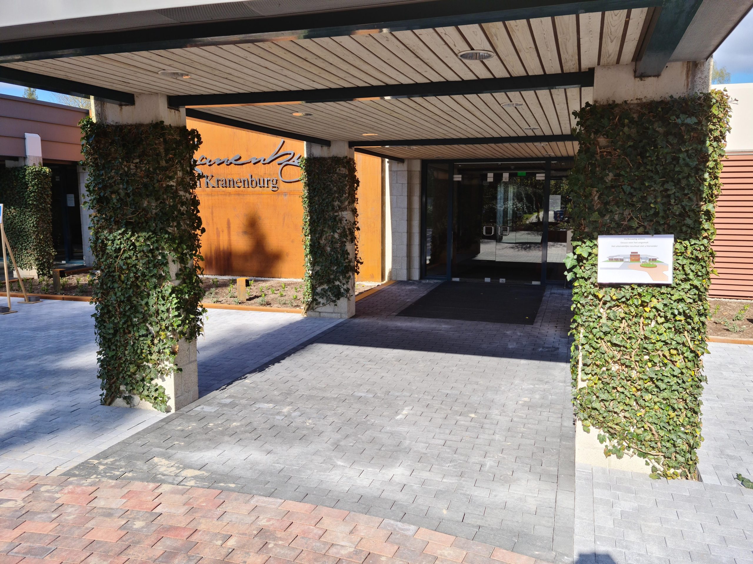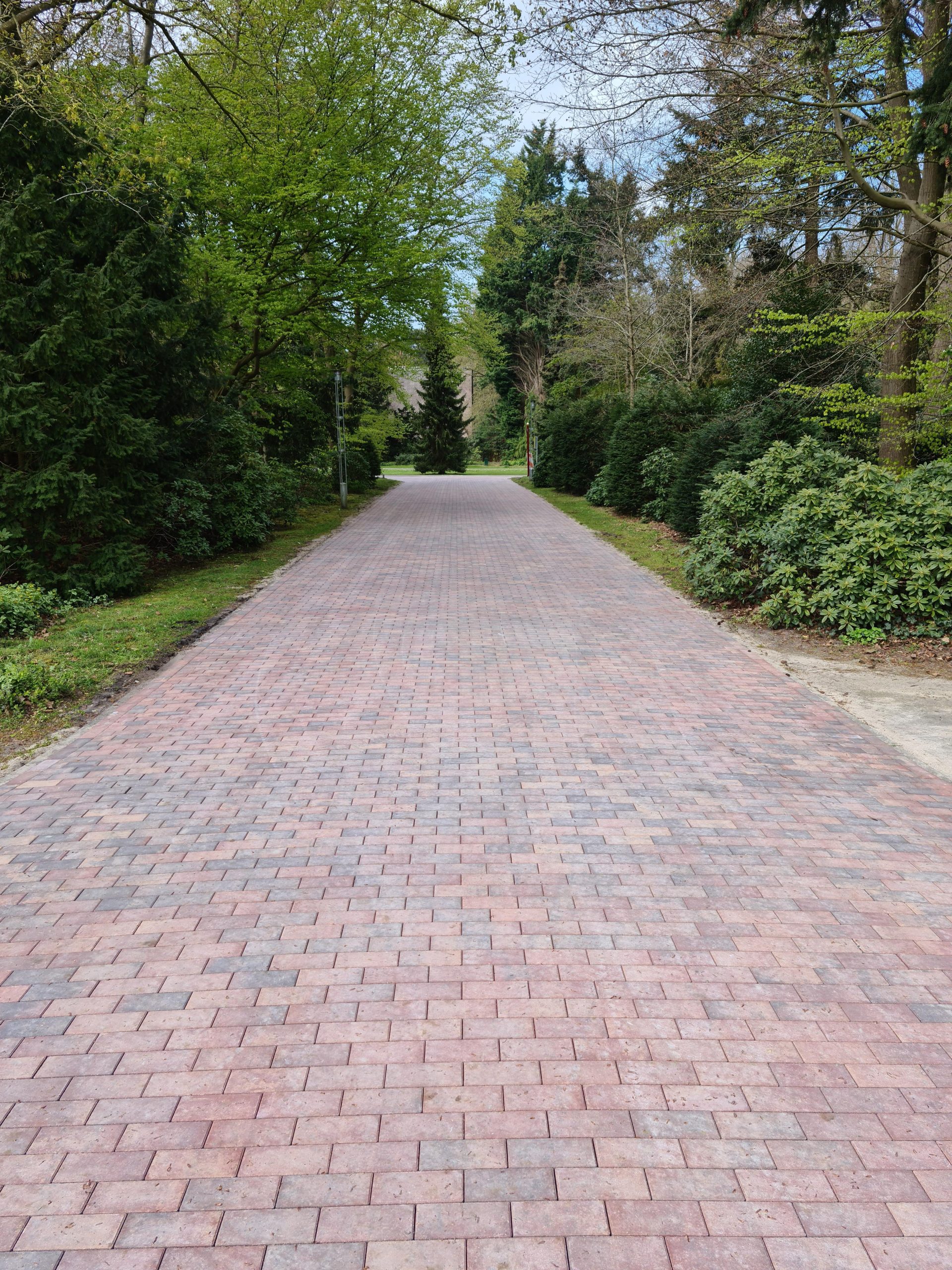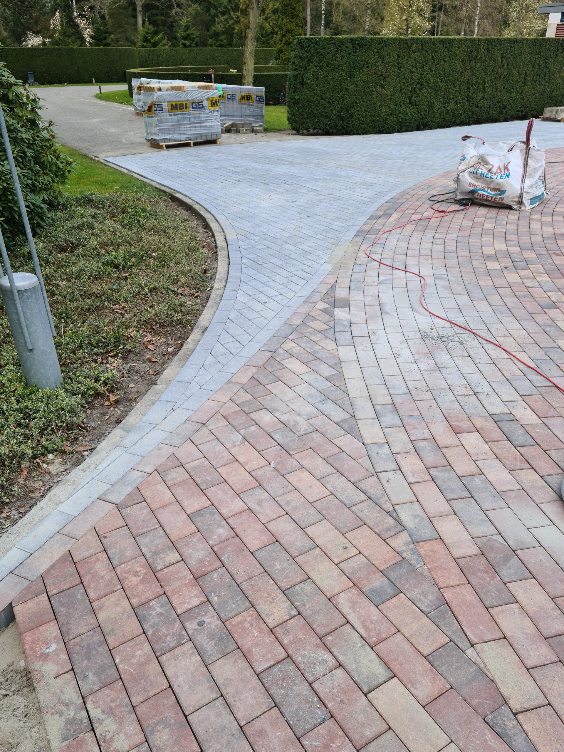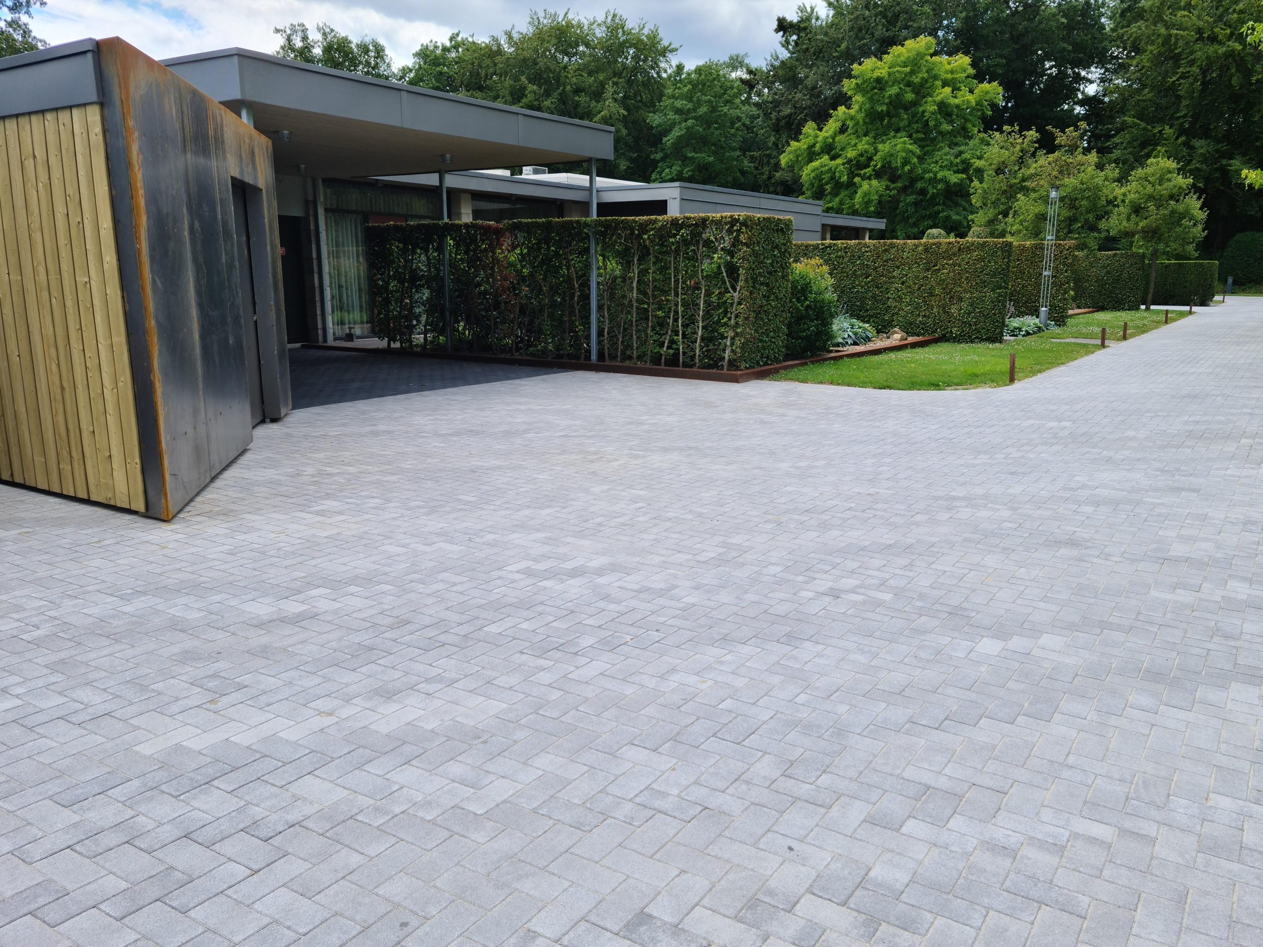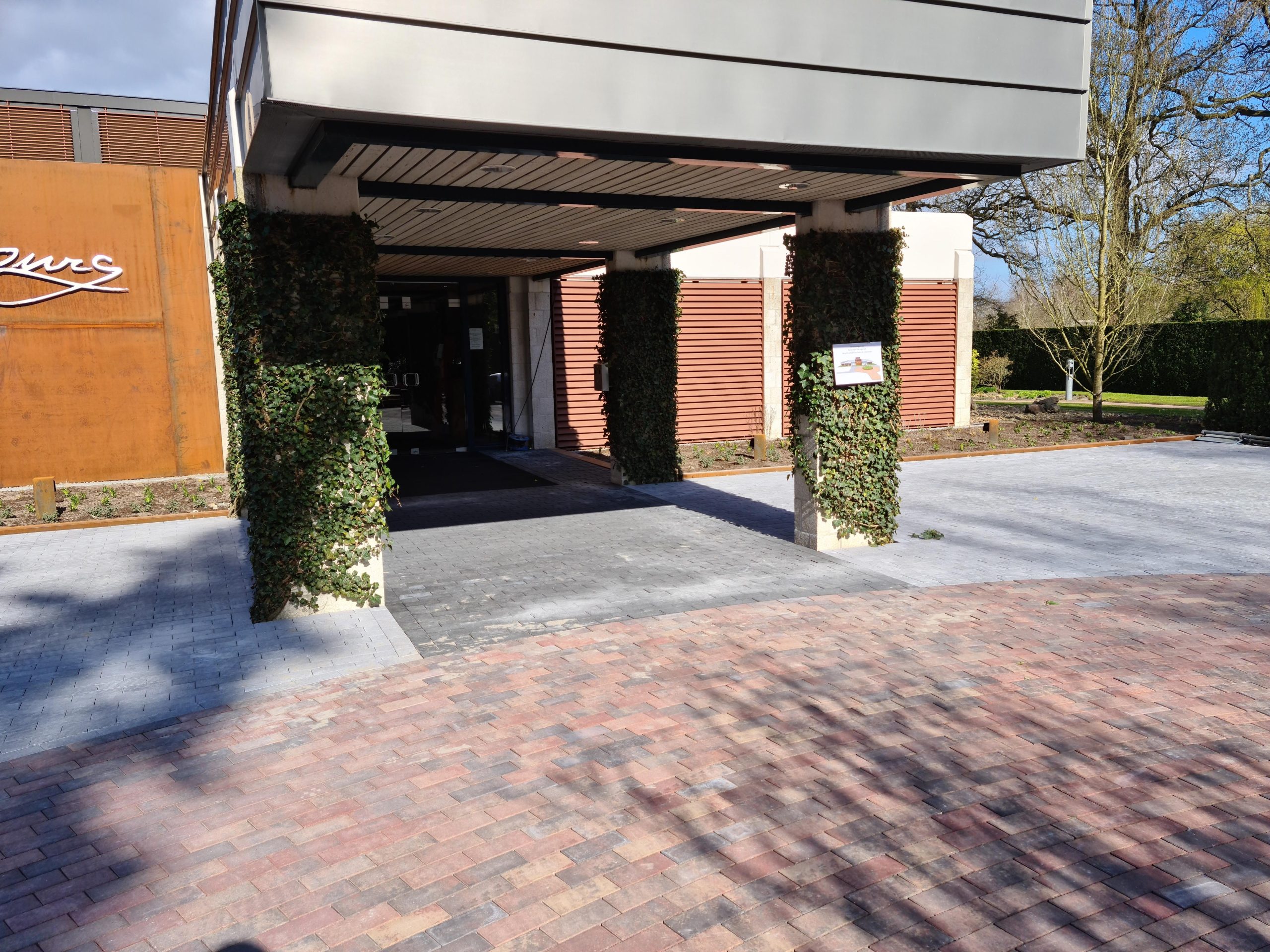 Een project waar wij zeer trots op zijn is de aanleg van 1.800 m² bestrating rondom het crematorium te Zwolle. Door de vele rondingen binnen dit project hebben wij alle betonklinkers exact op maat gezaagd. De toegangsweg, het voorterrein en het zijterrein liggen er op deze manier superstrak bij.