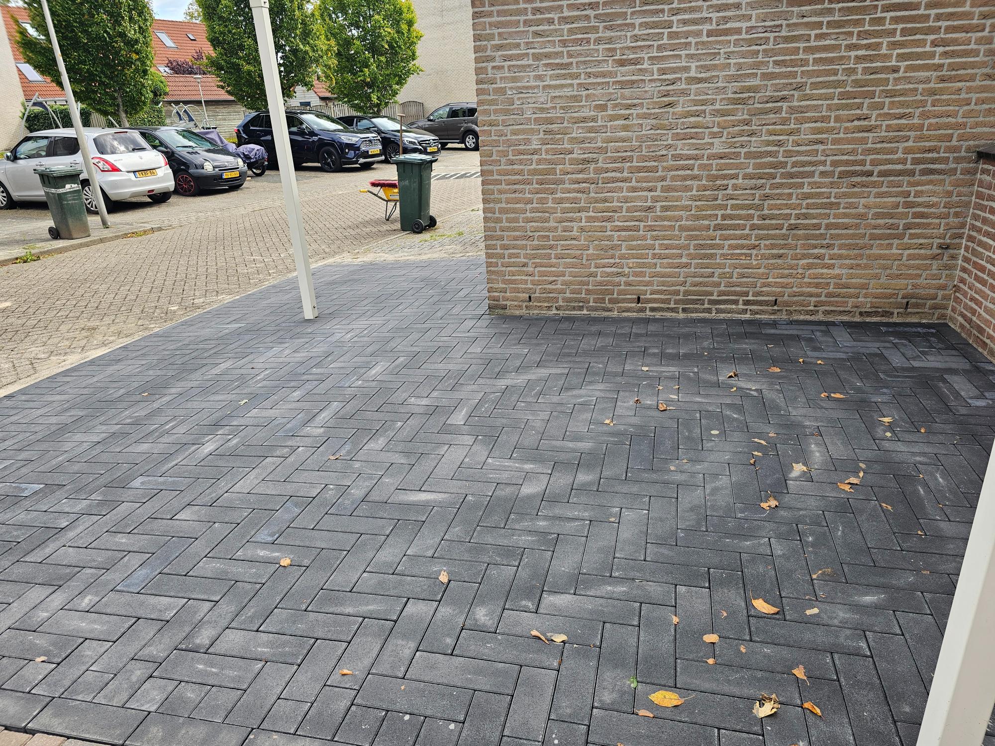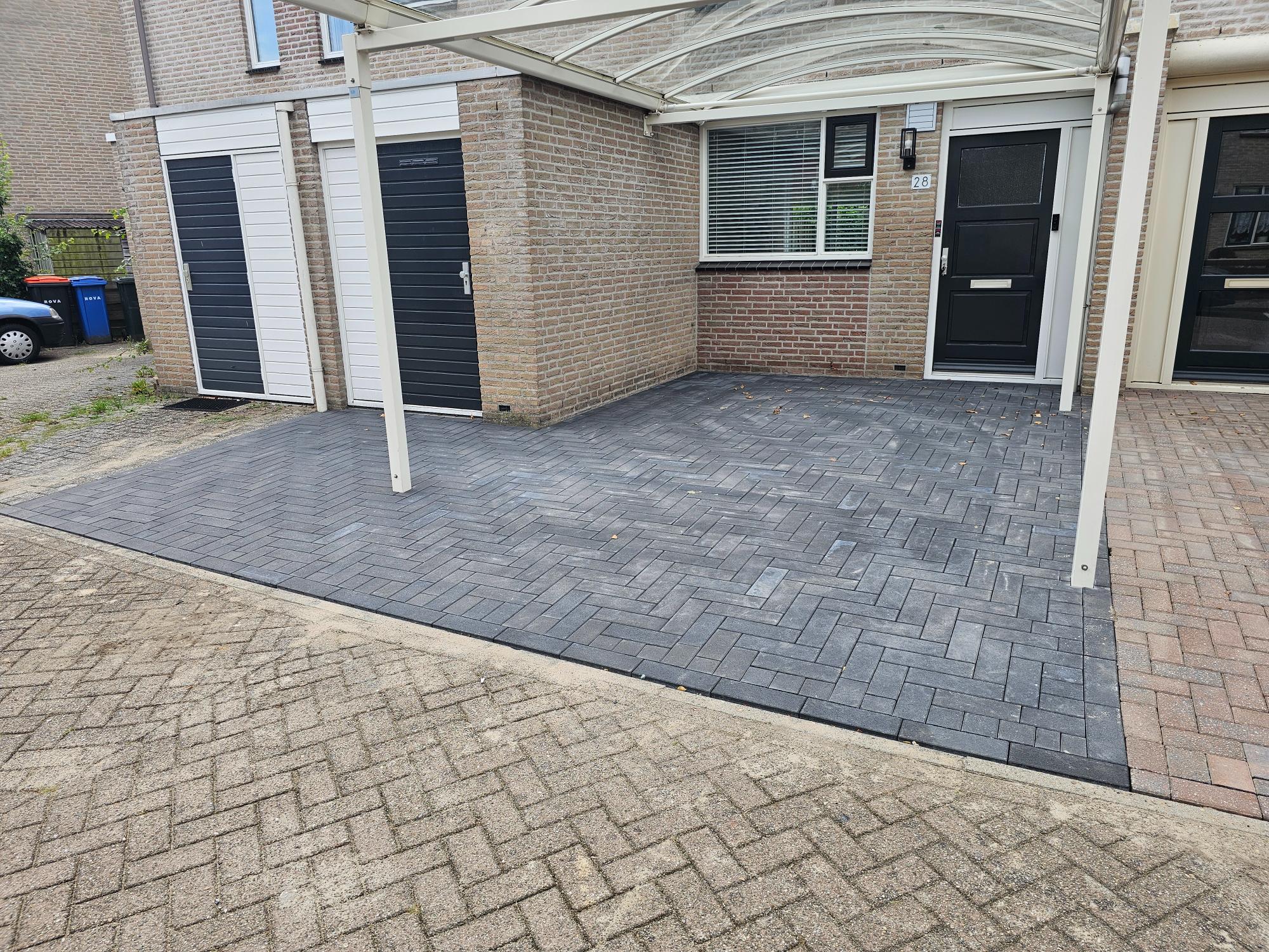 Deze oprit in Zwolle-Zuid hebben wij voorzien van 30 m² XL-betonklinkers waardoor deze kleine oprit een grote uitstraling heeft gekregen.