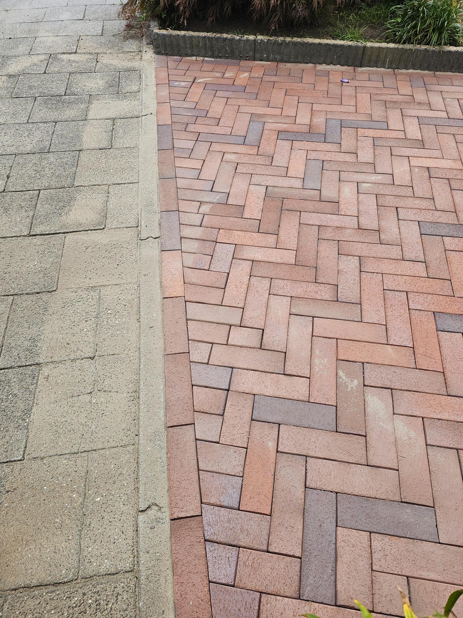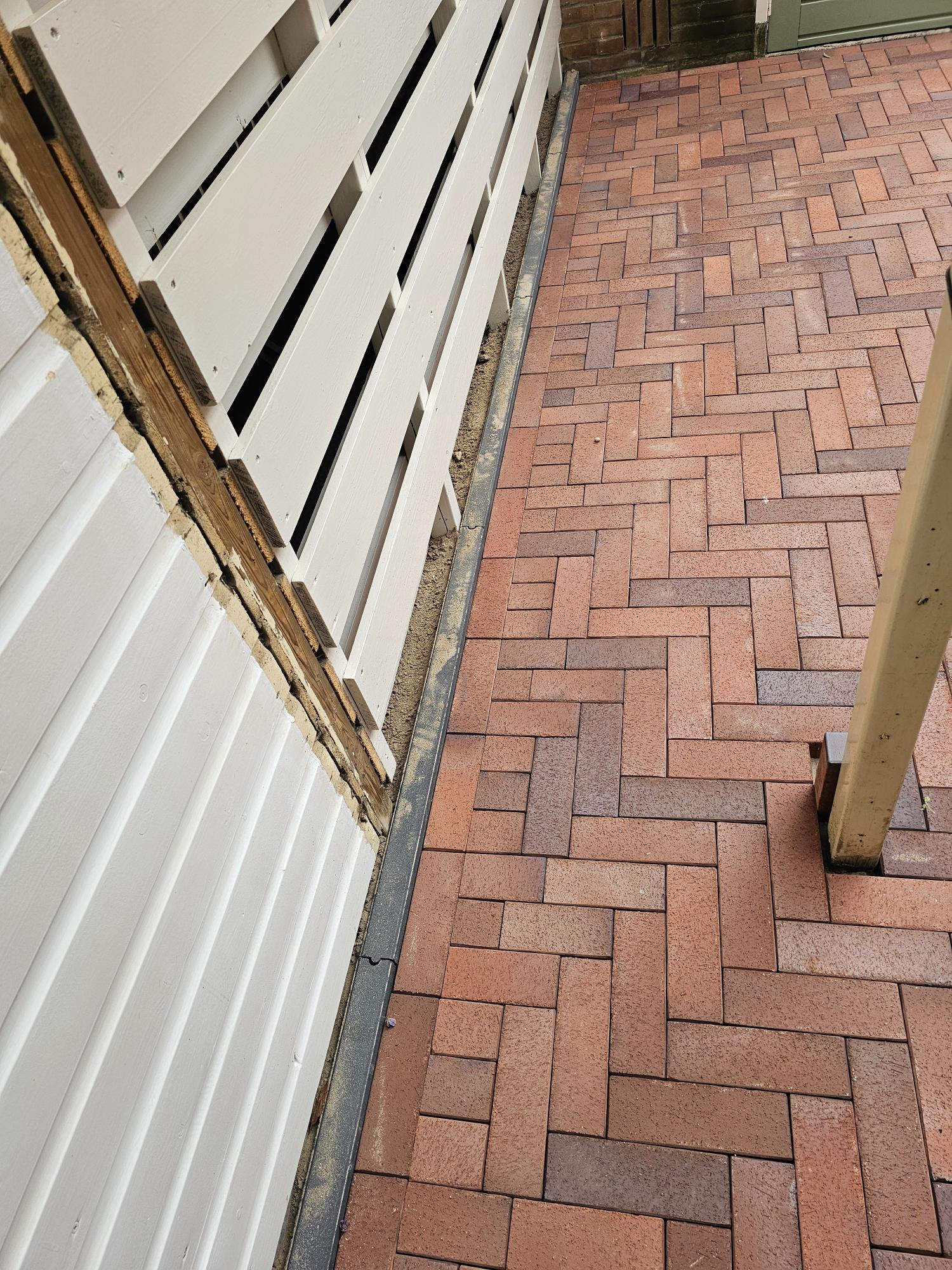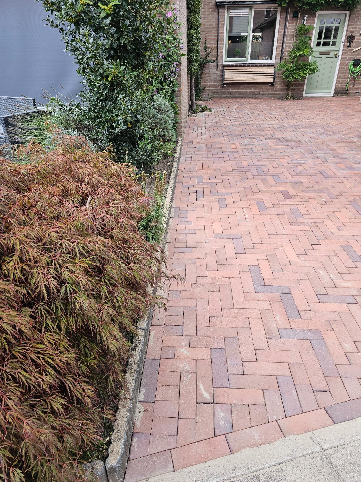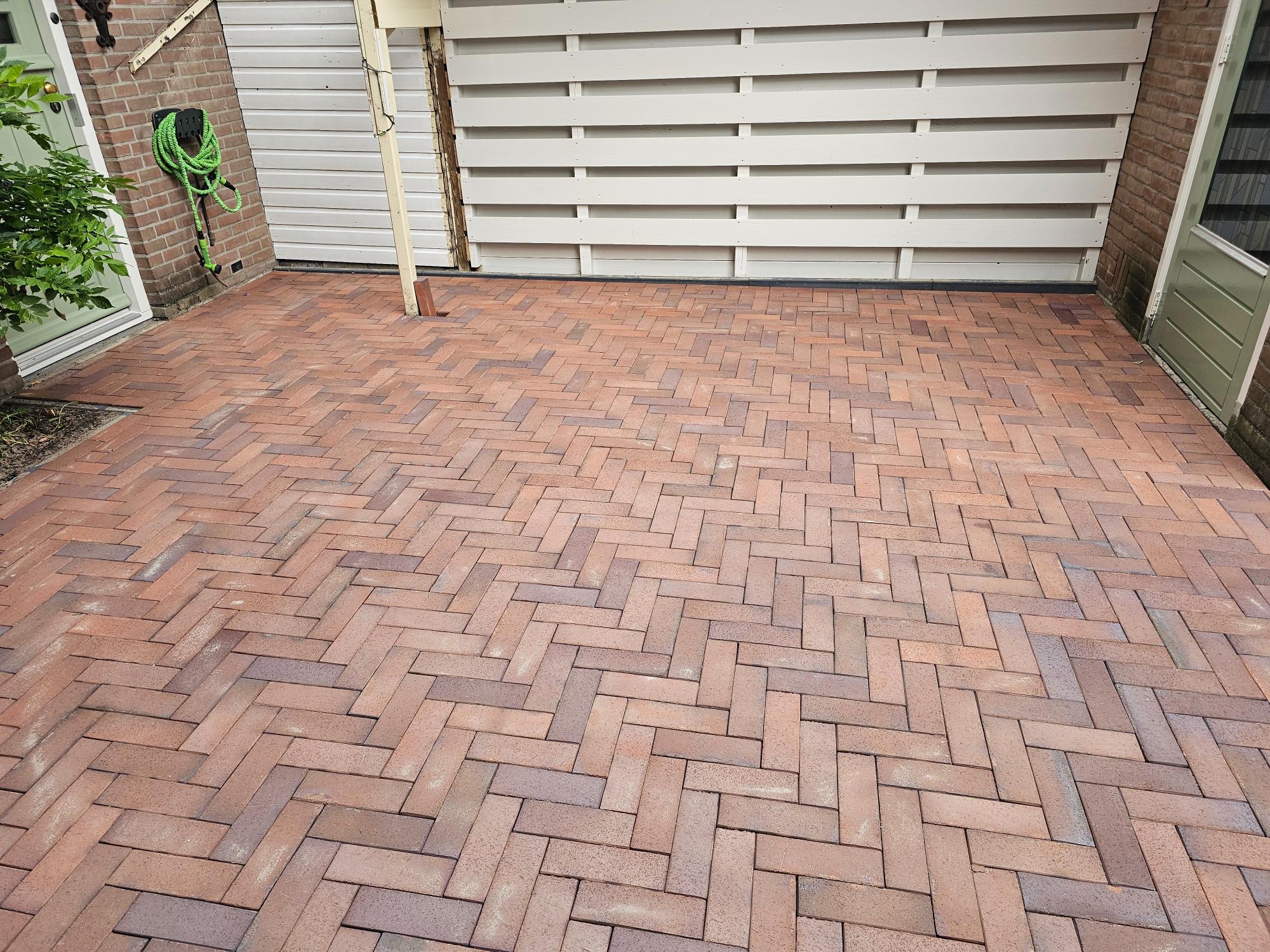 De gebakken dikformaten zijn gelegd in elleboogverband. Voor een mooi en strak geheel hebben wij de gebakken dikformaten gezaagd.