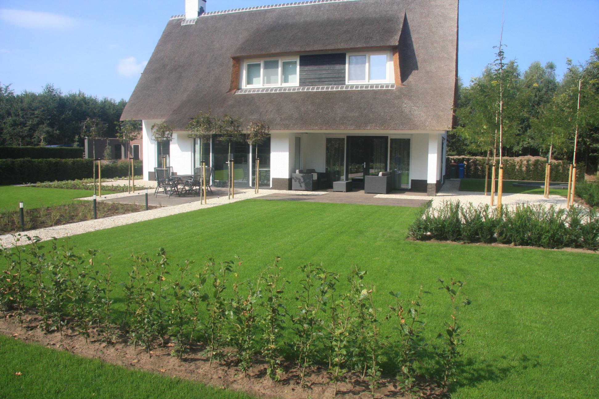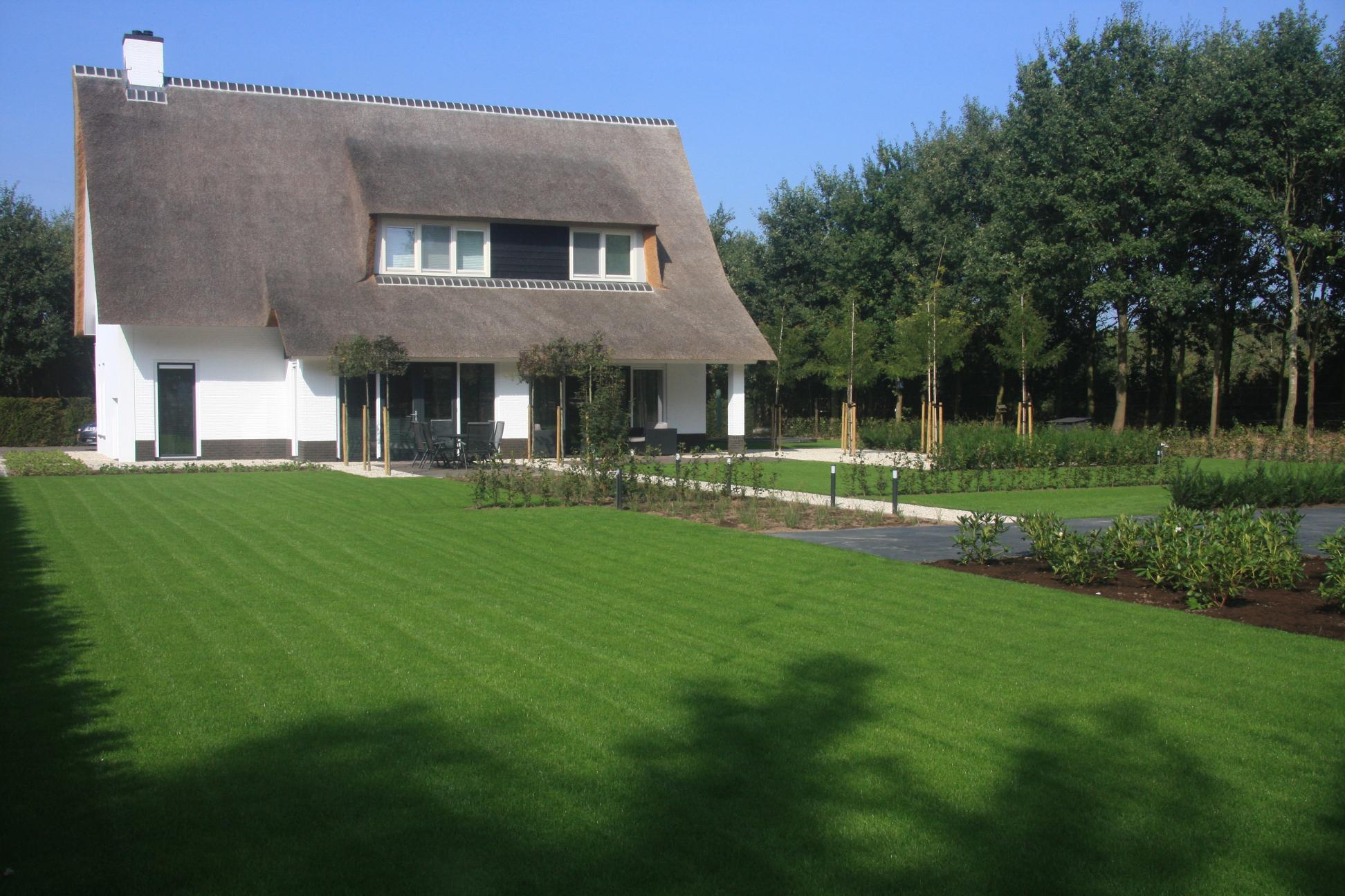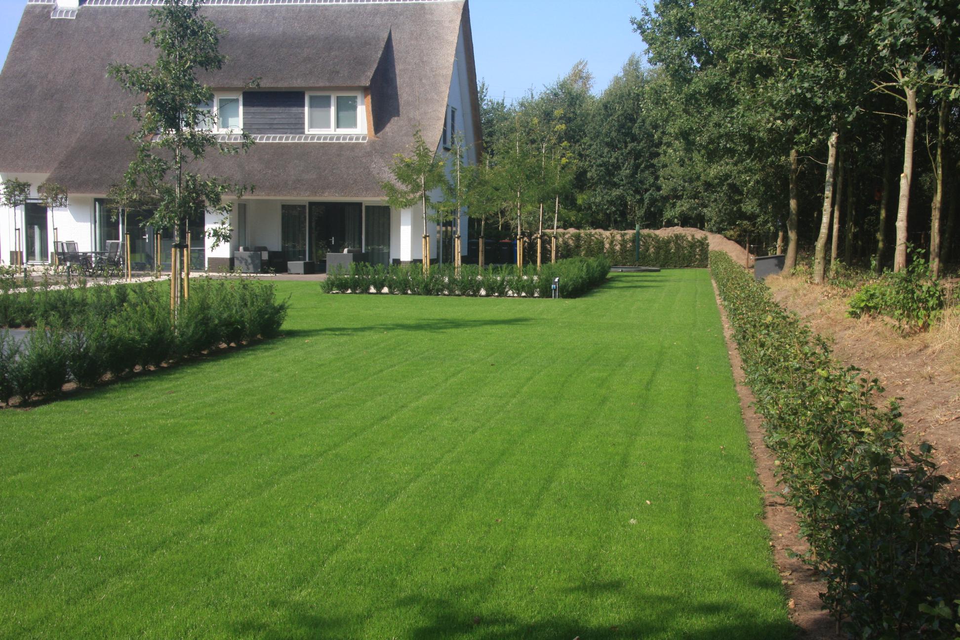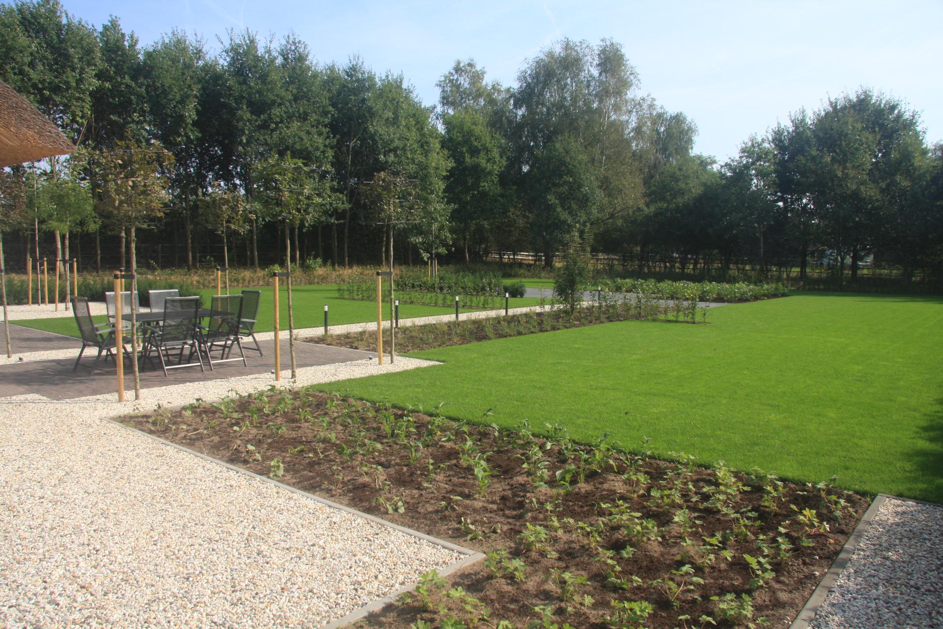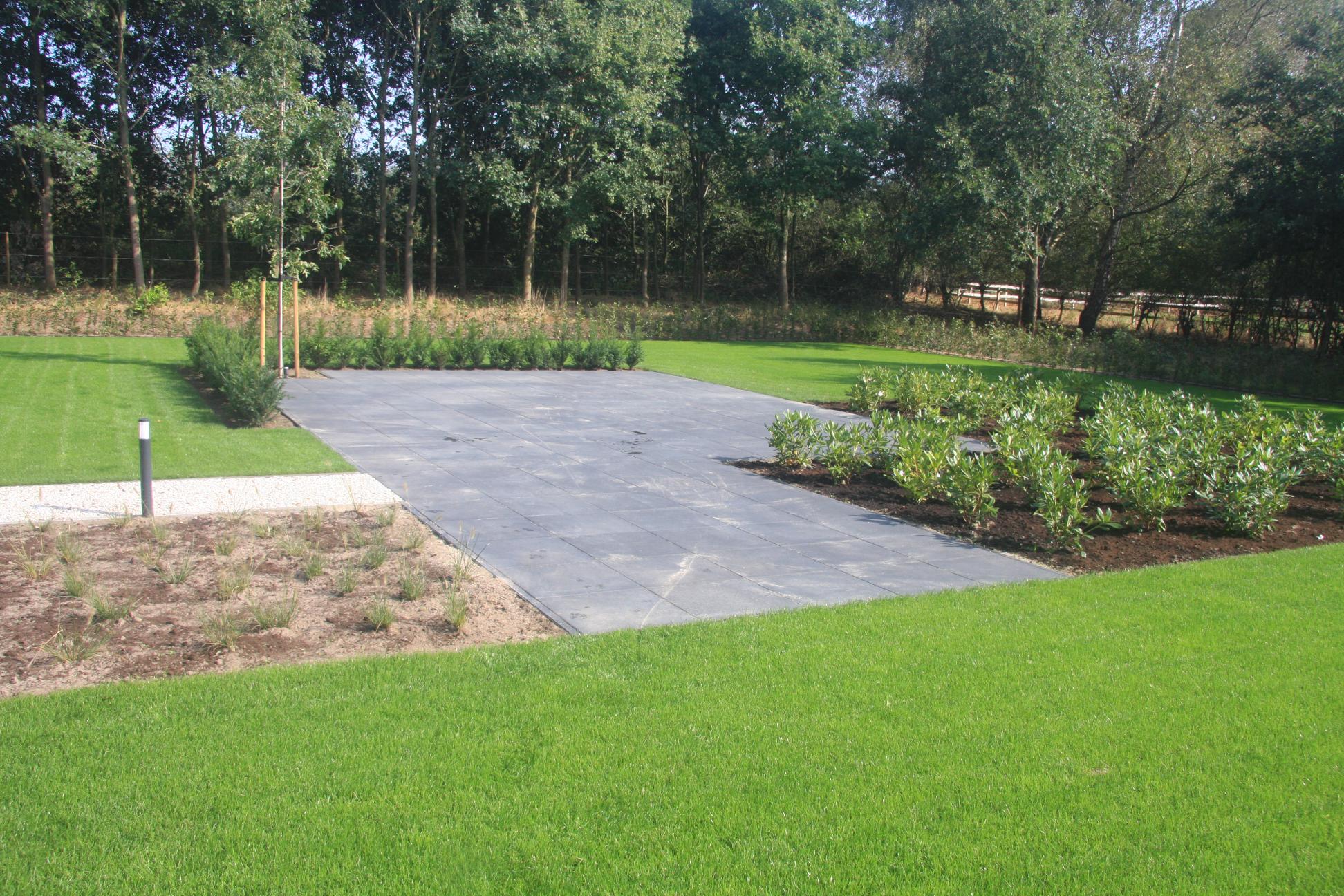 Voordat wij 750 m² graszoden hebben gelegd, hebben wij de ondergrond gefreesd, gewalst en uitgevlakt. Verder hebben wij ook nog in deze tuin In-Lite verlichting aangebracht